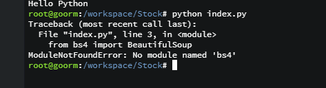 띠용??? 에러가 뜹니다. "모듈 낫 파운드 에러" bs4라는 모듈이 없다고 합니다.