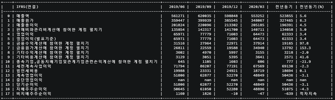 그러면 해당 페이지에서 아래 재무표를 이제 크롤링 해보겠습니다.