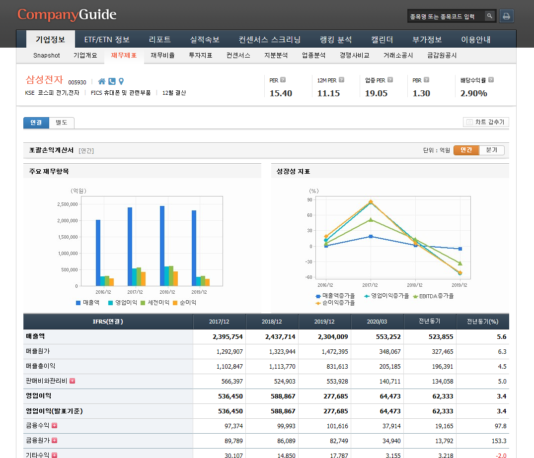 삼성전자(A005930) | 재무제표 | 기업정보 | Company Guide