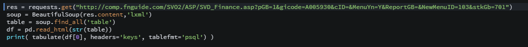 그러면 당연히 FnGuide에서 재무정보를 가져오도록 하는 코드를 작성하겠죠.
