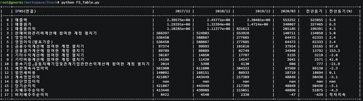 | [주식-프로그래밍] 4. 파이썬 - 주식 전체종목 재무데이터 가져오기 (2) | 2020.05.25 |