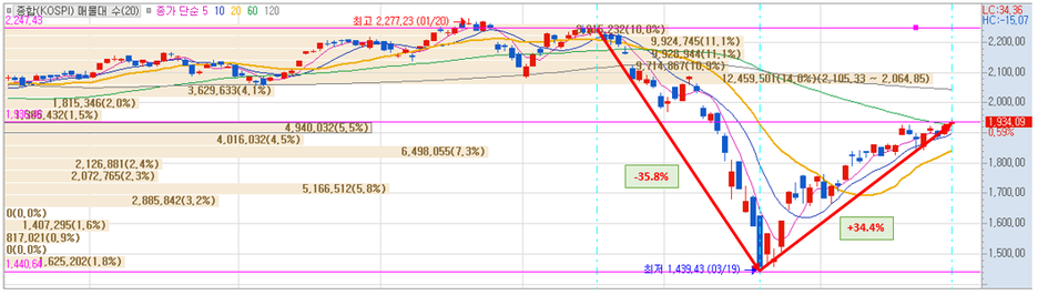 3/19 코스피 최저점 : 1439.43 → (4/28) 1934.09 (+34.4%)